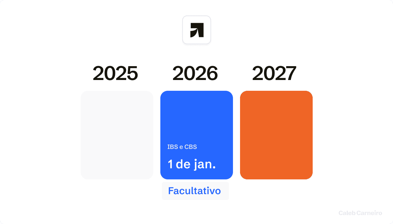 No ano de 2026, as alíquotas são fixas em 0,1% para o IBS e 0,9% para a CBS, totalizando 1% para teste.