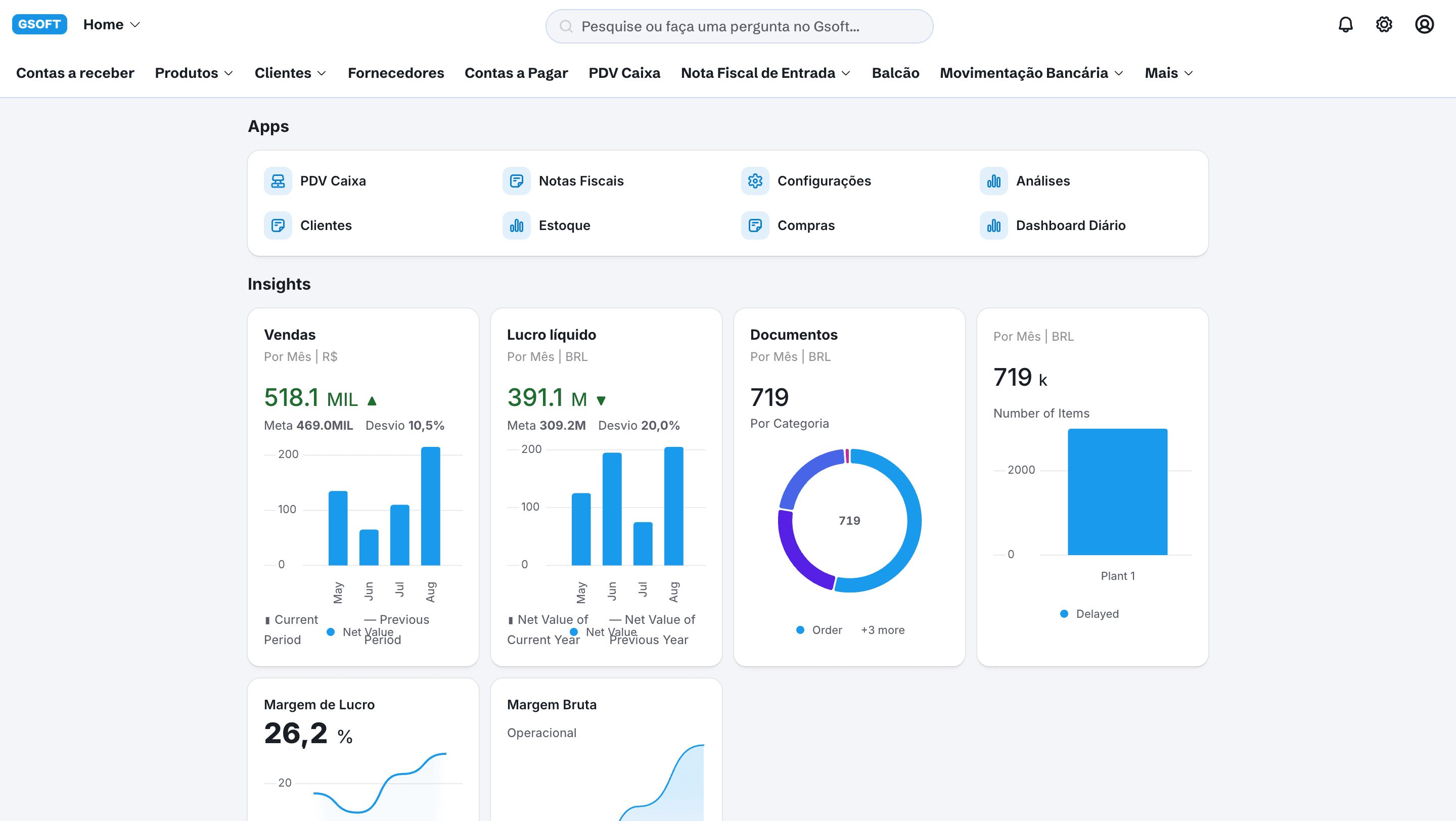 Integra operação, vendas, finanças e contabilidade.